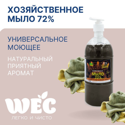 Хозяйственное жидкое мыло WEC, 1л, 72%