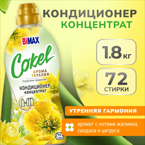 ДополнительноО картинке Кондиционер-ополаскиватель для белья BiMax Cokel, утренняя гармония, 1,8кг